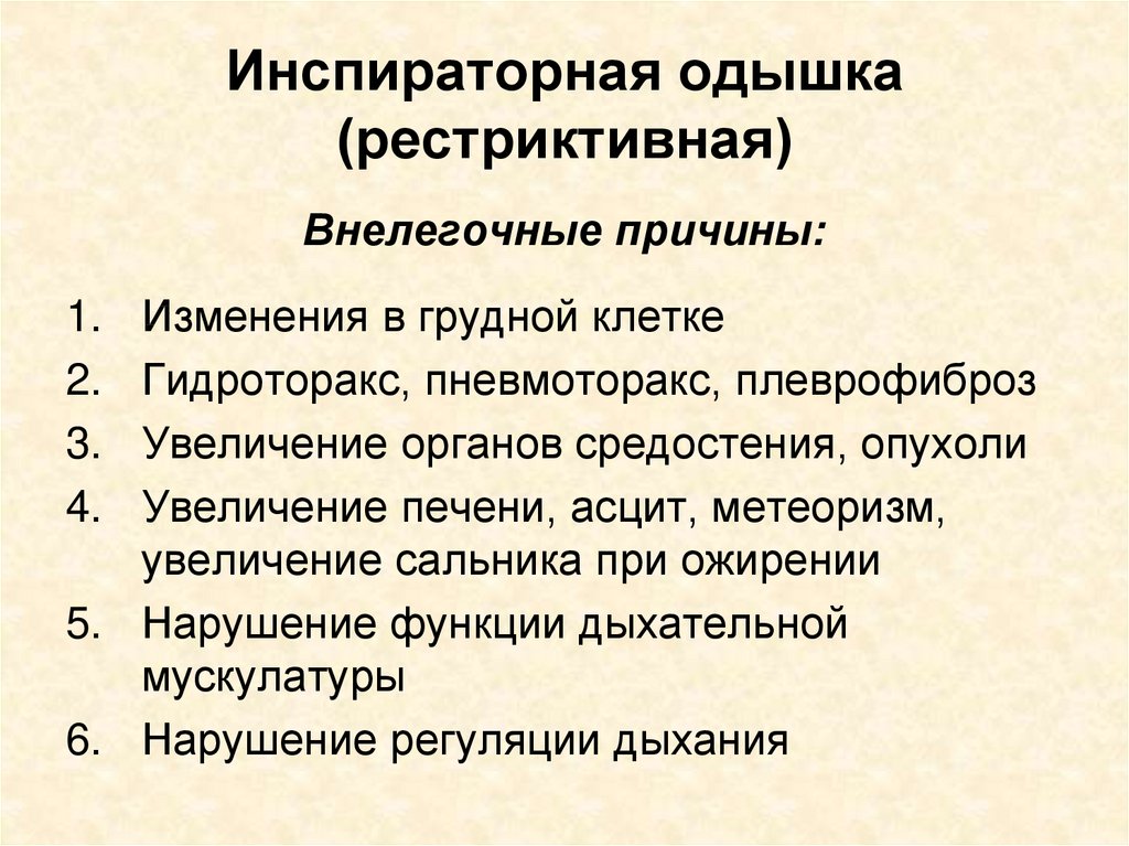 Причиной инспираторной одышки является сужение просвета крупных бронхов и трахеи под воздействием факторов разной природы.