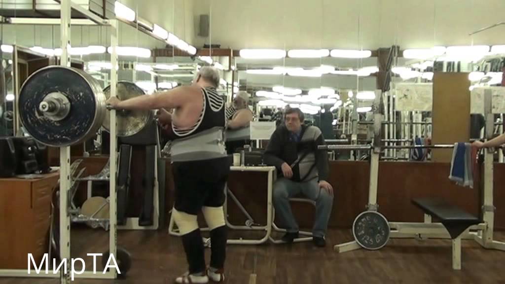 Приседание и выпрямление в полный рост с опорой спиной на тележку, вес груза постепенно уменьшать (6–8).