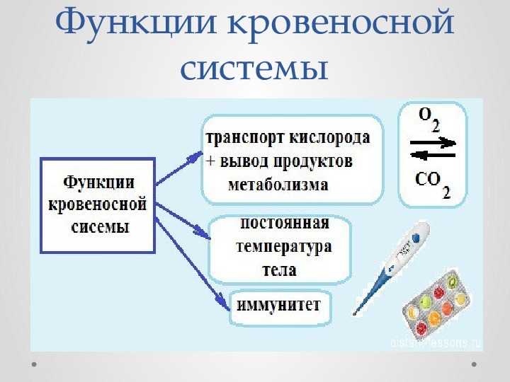 Сердечно-сосудистая система выполняет три основные функции: транспортировка материалов, защита от патогенов и регулирование гомеостаза организма.