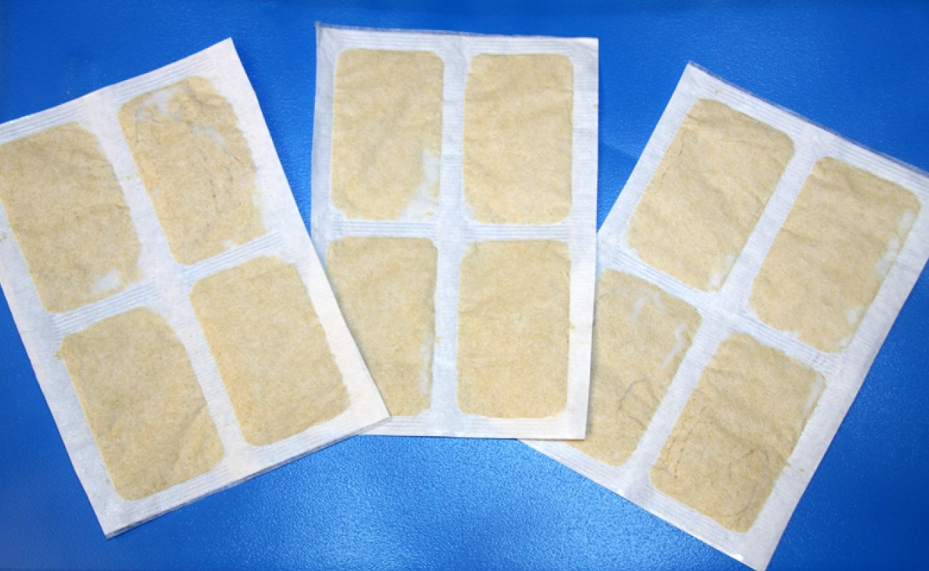 - Горчичники поочередно опускают в теплую воду, после чего каждый из них должен быть размещен на отведенном для него участке.
