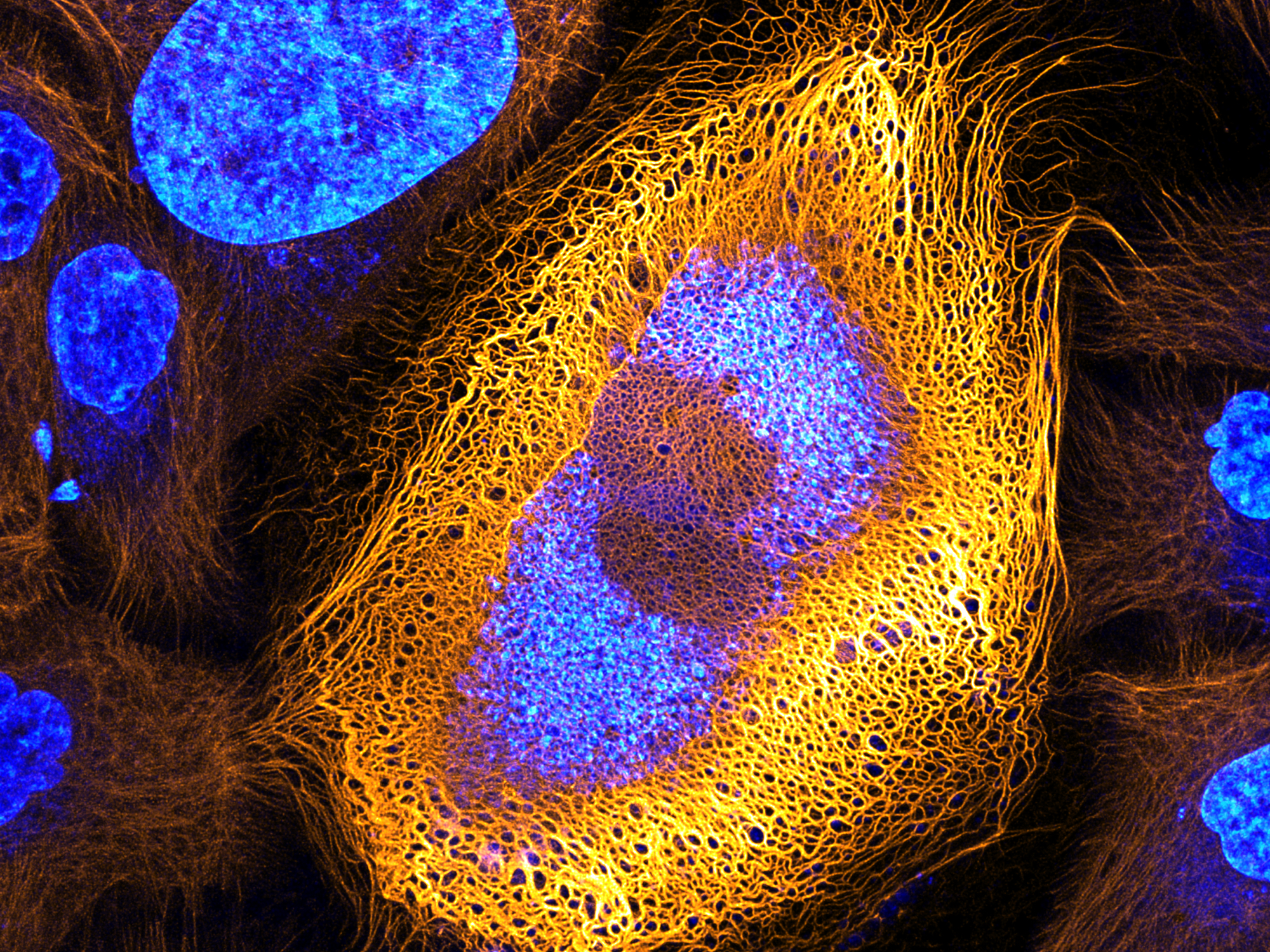 Еще одна мембранная органелла, связанная с ядерной мембраной. Выполняет множество функций, наиболее важными из которых являются синтез и сворачивание белка. Некоторые белки поступают в Гольджи для дальнейшей модификации и окончательной упаковки.