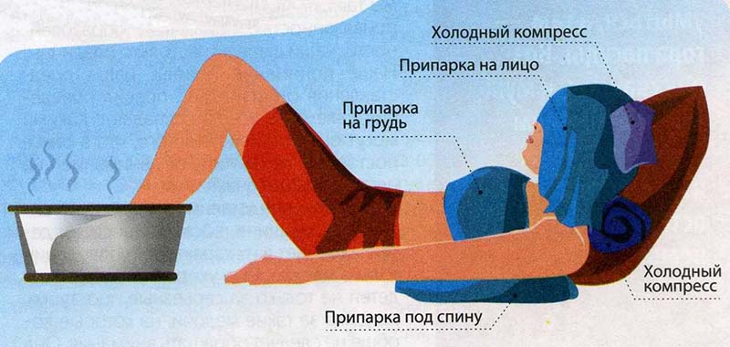 Необходимое оснащение: холодная вода со льдом, сложенная в несколько слоев марля.