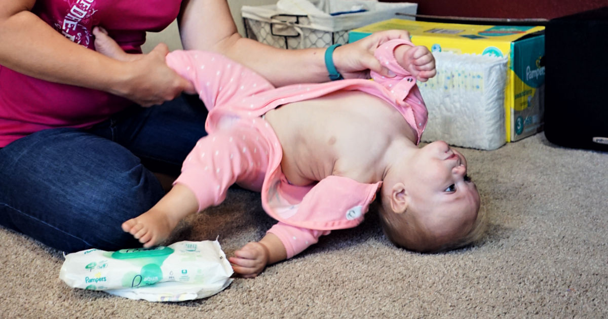 « Мой сын ненавидит, когда меня меняют. Он будет плакать и извиваться, пока не освободится. Он весит почти 30 фунтов и очень силен. Я могу переодеть его только в том случае, если с ним разговаривает его трехлетняя сестра или если я передаю ему пакет для детских салфеток.«