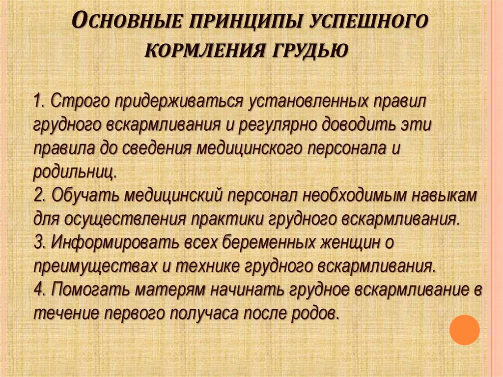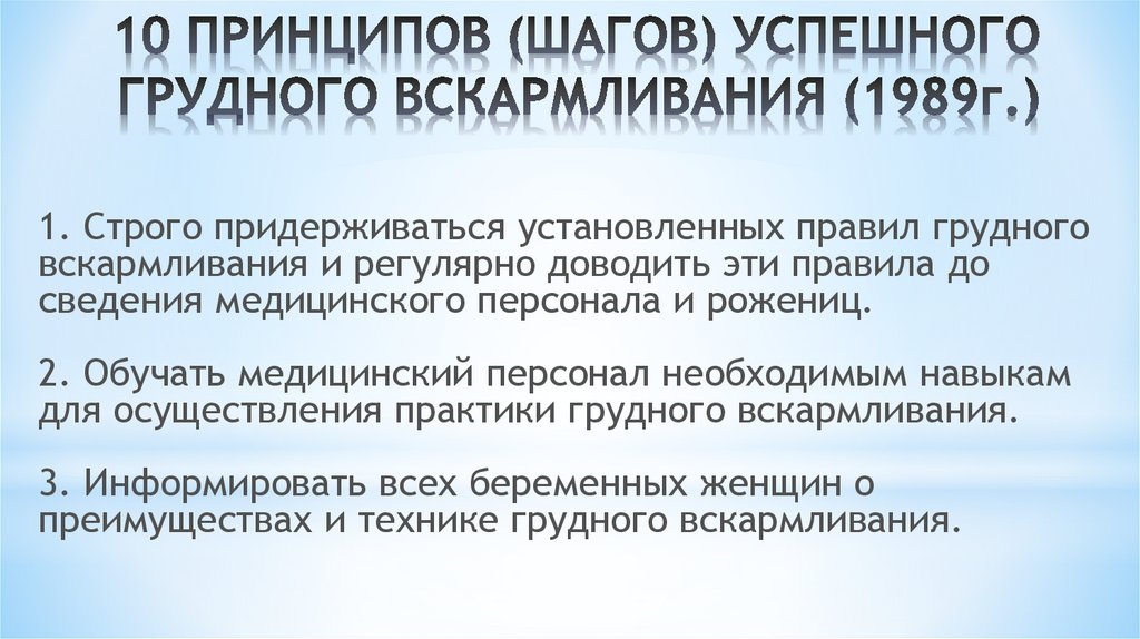 Основные правила успешного грудного вскармливания (рекомендации ВОЗ/ЮНИСЕФ)