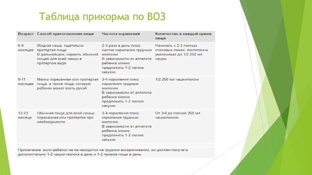 Что касается младенцев старше шести месяцев, по рекомендации ВОЗ «матери должны кормить грудью и давать ребенку питательную и полезную пищу в возрасте до двух лет и даже позже».